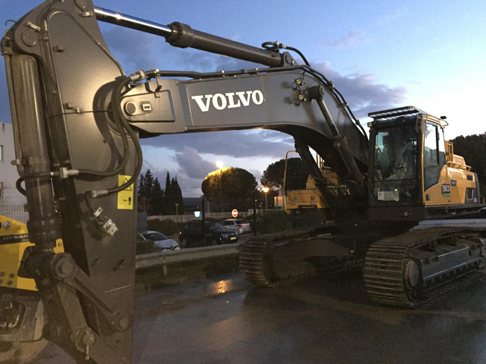 Matériel équipé d’une flèche monobloc, des lignes hydrauliques BP, BRH, Rotation, d’un graissage centralisé, pompe à carburant.